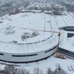 Video | Hijskranen ingezet om sneeuw van dak stadion Thialf te verwijderen