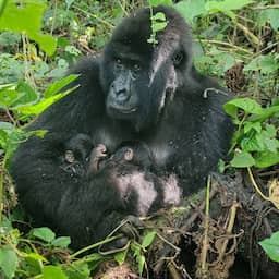 Bedreigde berggorilla baart unieke tweeling in Congolees oorlogsgebied